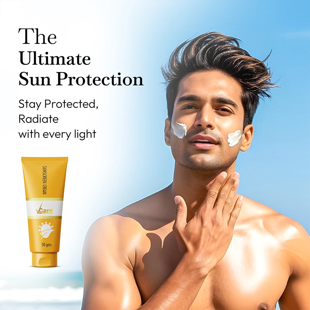 Follow it up with the VCare Sunscreen SPF 30+, designed to shield your skin from harmful UVA and UVB rays. Lightweight and non-greasy, this sunblock helps prevent tanning & making it ideal for Indian skin types.