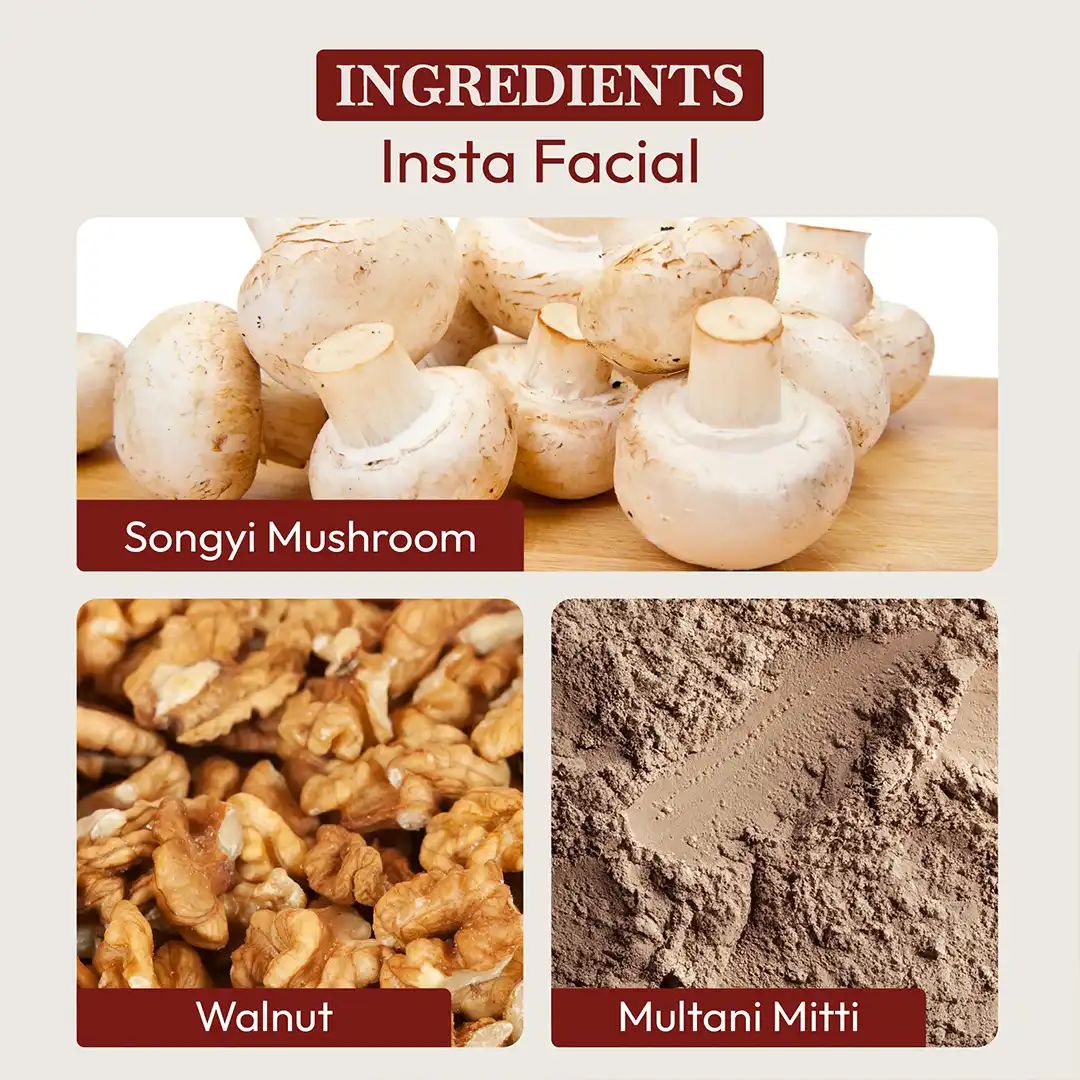 Start with the VCare Insta Facial 3-in-1, a triple-action formula that acts as a scrub, cleanser, and face pack in one. Powered by Songyi Mushroom, Walnut, and Multani Mitti, this unisex face treatment deeply cleanses pores, exfoliates dead skin, evens skin tone, and revives your natural glow.