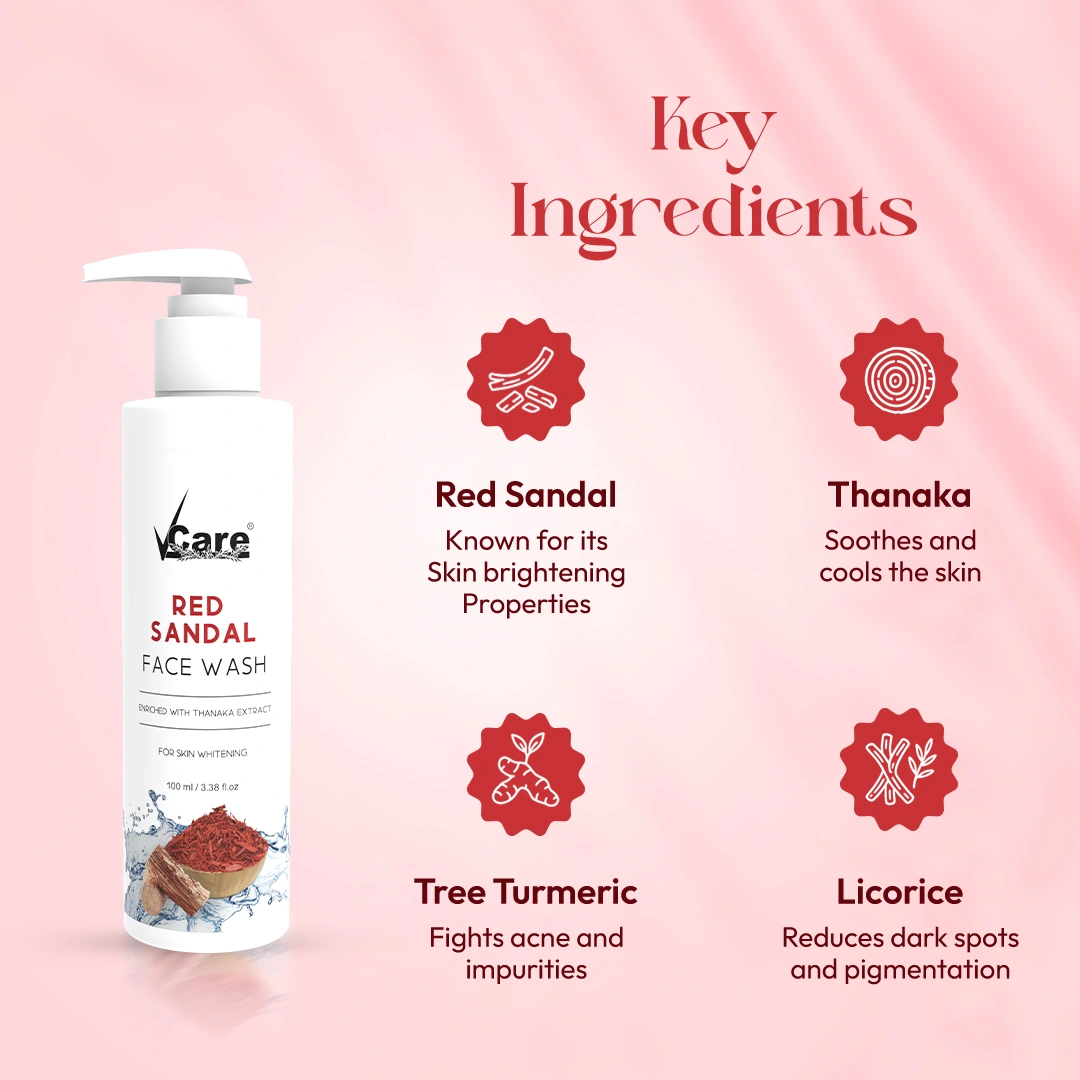 Get glowing skin with the VCare Skin Brightening Combo, a specially curated duo of Red Sandal Face Wash and Insta Glow Cream. This combo is your complete solution for daily skin care—cleansing, brightening, hydrating, and protecting in one go. Start your skincare ritual with the Red Sandal Face Wash, infused with the goodness of Red Sandal, Thanaka, Tree Turmeric, and Licorice. It gently lifts away dirt, oil, and dead skin cells, leaving your skin feeling fresh and smooth.
