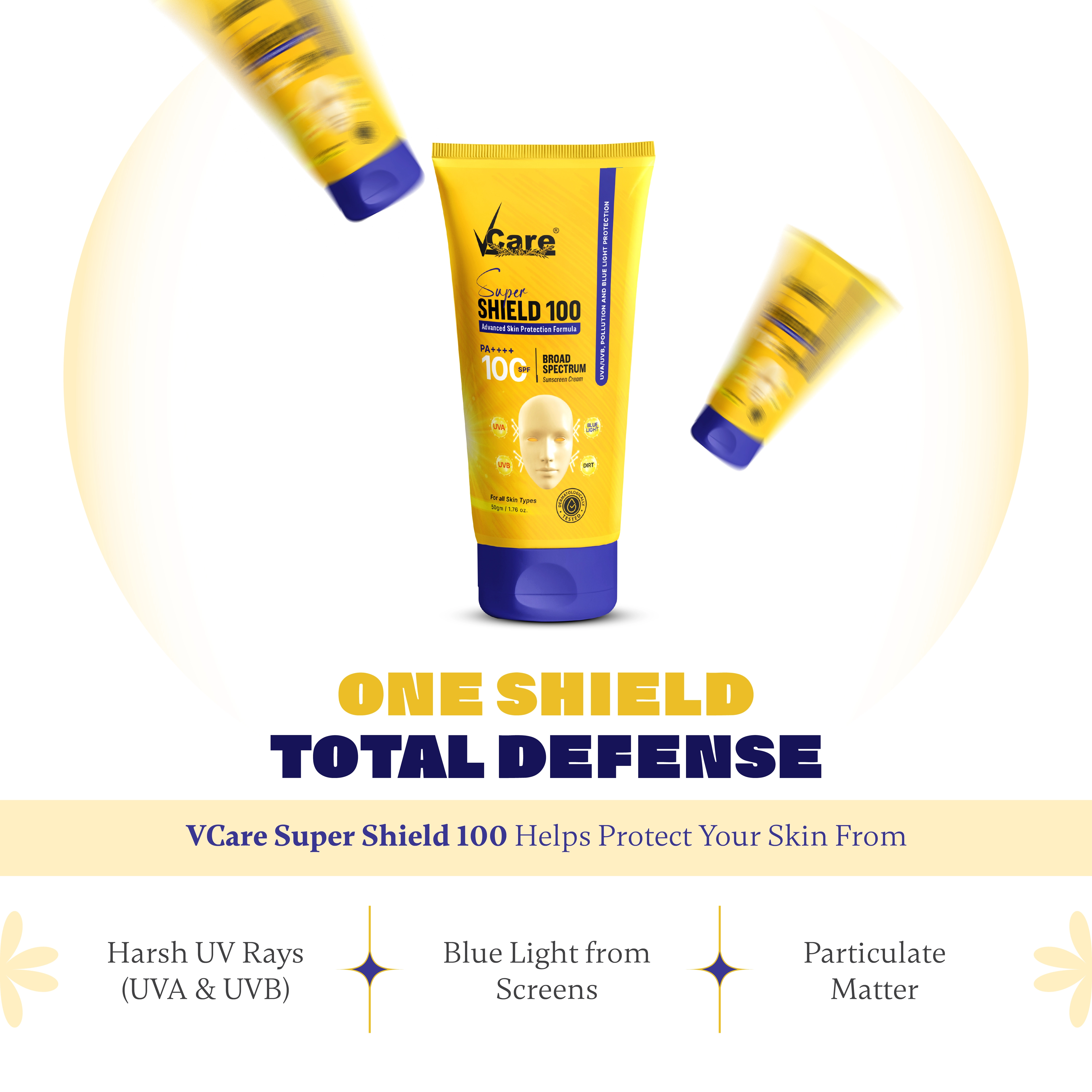 VCare Sunscreen, the best sunscreen lotion for all skin types is a sun protection cream formulated to provide complete sun protection with its SPF 30 and helps prevent sunburn, tanning, and premature aging caused by harmful UV rays. This sunscreen lotion is suitable for both men and women with its lightweight, non-greasy texture that absorbs quickly into the skin. This sunscreen cream for the face is perfect for those with combination skin as it provides sun protection without causing breakouts. It is the best sunscreen in India and is also used as a sunburn cream or sun tan lotion.